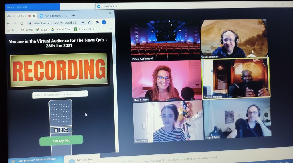 The highlight of an uneventful January was probably getting tickets to be part of the virtual audience for a BBC live recording. I have been applying since last June, and we finally got lucky in the draw for the Radio 4 News Quiz, a satirical comedy show based on the week’s events. It was strange seeing the panellists in their bedrooms and living rooms (and in one case a large cupboard!) with one also joining from Australia at 3am, but it made me log off from work early and was a refreshing change in routine. We had to wear headphones to avoid feedback, so the dog was baffled by the laughing and clapping at nothing.