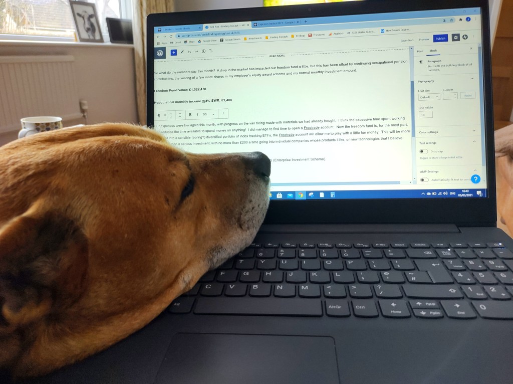 I don’t want to jinx it, but it really feels like spring is on the way. The daffodils are coming out and the UK government are starting to make positive noises about releasing lockdown restrictions. From the freezing conditions and snow at the start of the month, the last couple of weeks have brought a bit of sunshine and a much more cheerful mindset. My work life balance definitely moved in the wrong direction this month, but the recruitment activity which is going to allow me to work less is going very well. I hope to be able to define the timeline for a more work-optional lifestyle in the next couple of weeks.