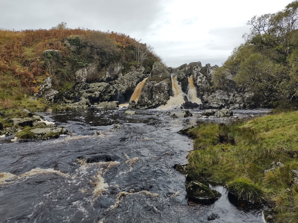 Even if Bruce didn’t always want to come with us, we enjoyed some beautiful walks from the cottage and saw a lot of wildlife including red squirrels, stoats and roe deer and many different birds. The cottage was right next to a river, with a waterfall and salmon ladder about 100 metres downstream. After heavy rainfall, the latter looked more like an olympic kayak course. It is the right time of year to see leaping salmon coming upstream to spawn, but despite a lot of watching at the beginning and end of the day, we weren’t able to spot one. I suspect this is a symptom of the steep decline in salmon numbers in Scotland generally, but it might just be they waited for us to give up and return to the cottage 😆
