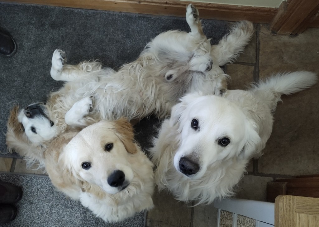 The terrible trio: Hamish (upside down), Dickens and Harris (aka ‘the pupster’)