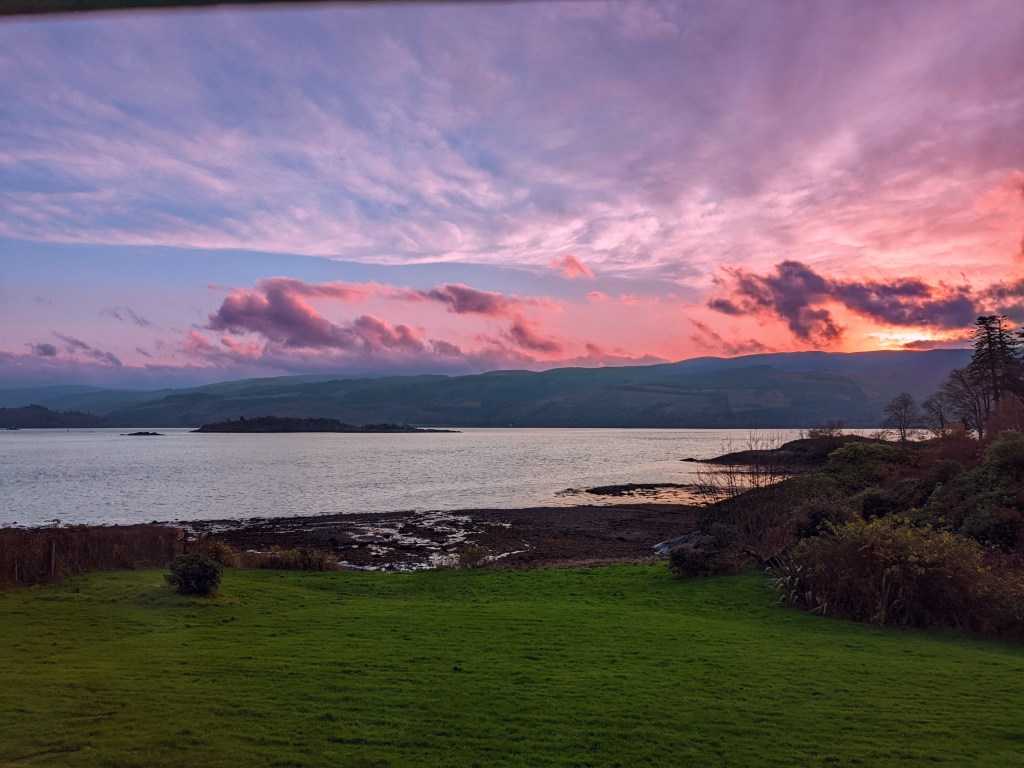 After that sit, we decided we would take a break from caring for animals and have a bit of a holiday, exploring a bit further up the west coast. This meant actually paying for some accommodation (shock, horror!), but also meant we got to choose our location. With holiday lets not being in huge demand in November, we got a great deal on a cottage overlooking Loch Fyne and enjoyed some spectacular sun rises from our bedroom window (see photos at the end). The weather was pretty awful, so we didn’t get out a much as we would have liked, but a wet weekday was the perfect excuse for a fancy seafood lunch. We were also quite close to the Knapdale beaver project, so couldn’t resist the possibility of seeing a beaver in the wild. Sadly, they were all keeping a low profile while we were there, but there was plenty of evidence of recent beavery activity.