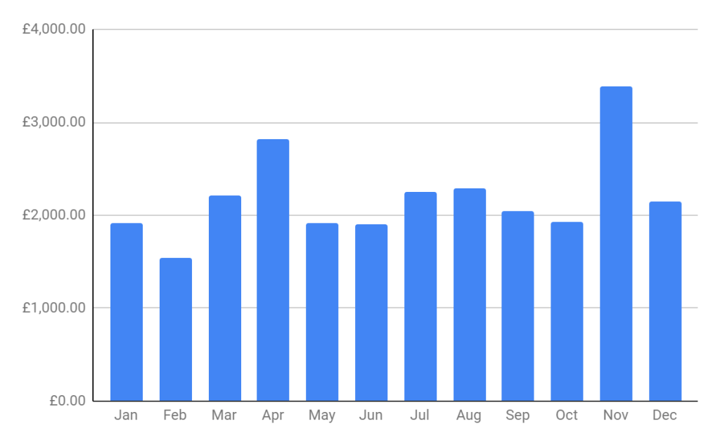 As you might expect, as we have been ‘homeless’ for 6 months, our utilities spend was less than half of last year, as was the home and garden line. This was offset by increased entertainment spending, which was mostly eating and drinking out with friends and family.