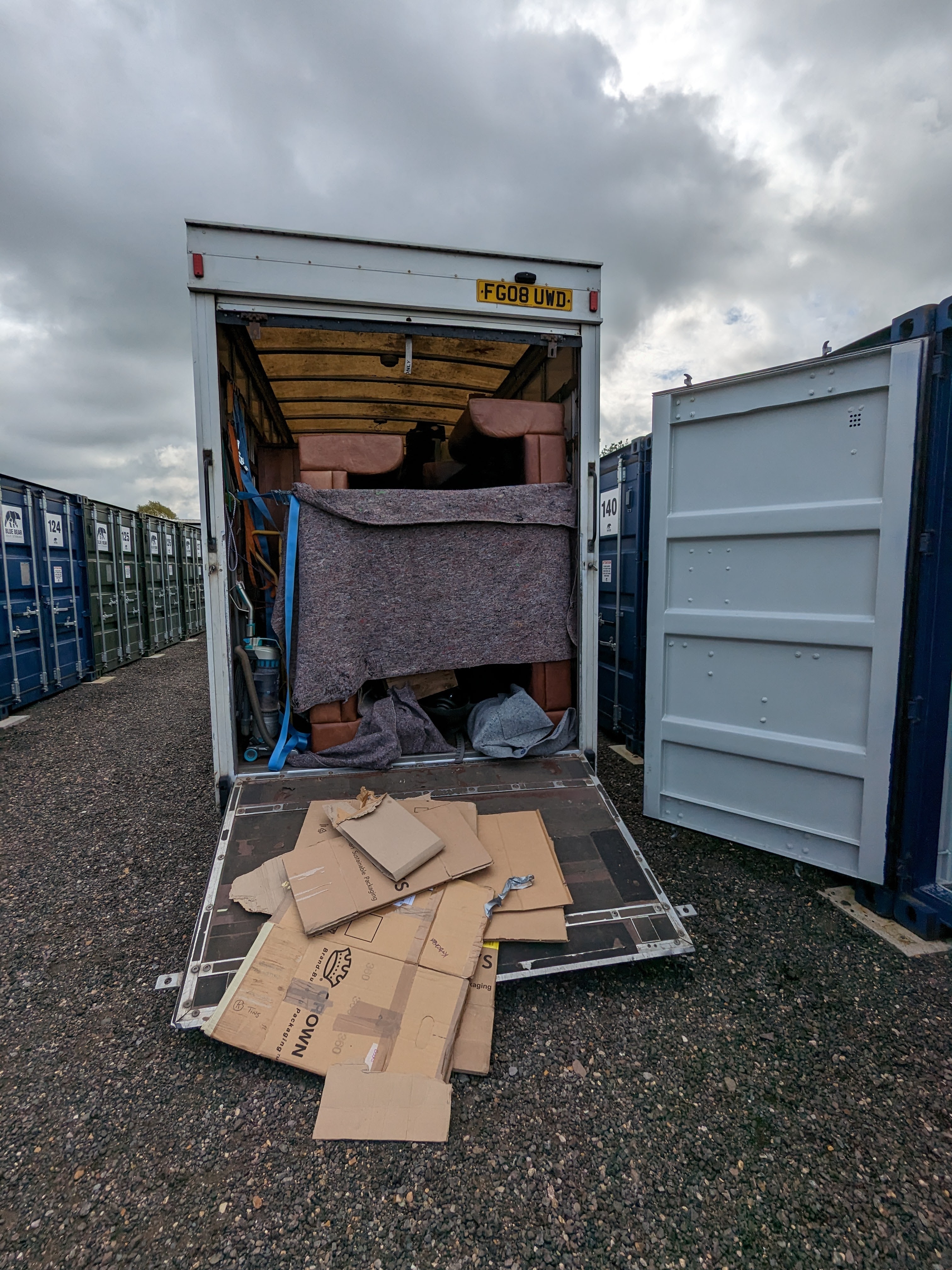 At 7am on Friday 5th May, we met up with Ray and 2 others at the storage site to start the job; the plan being to load up, reach the destination and unload the same day. The container was empty before 10am, and we were ready to go………..so far so good. Unfortunately, Ray’s van didn’t make it past Peterborough before breaking down at the side of the A1. We really haven’t had much luck with vans the last few weeks.