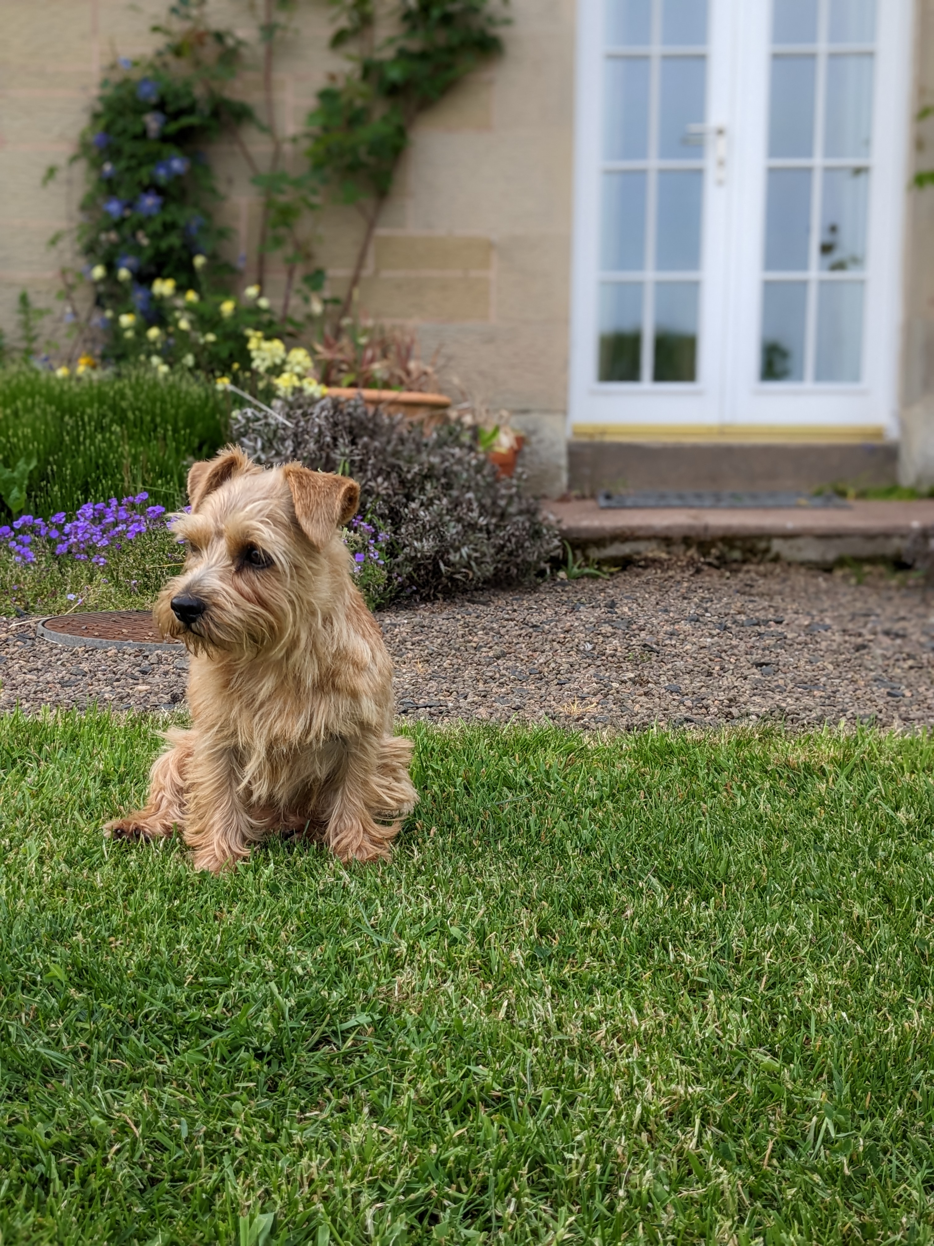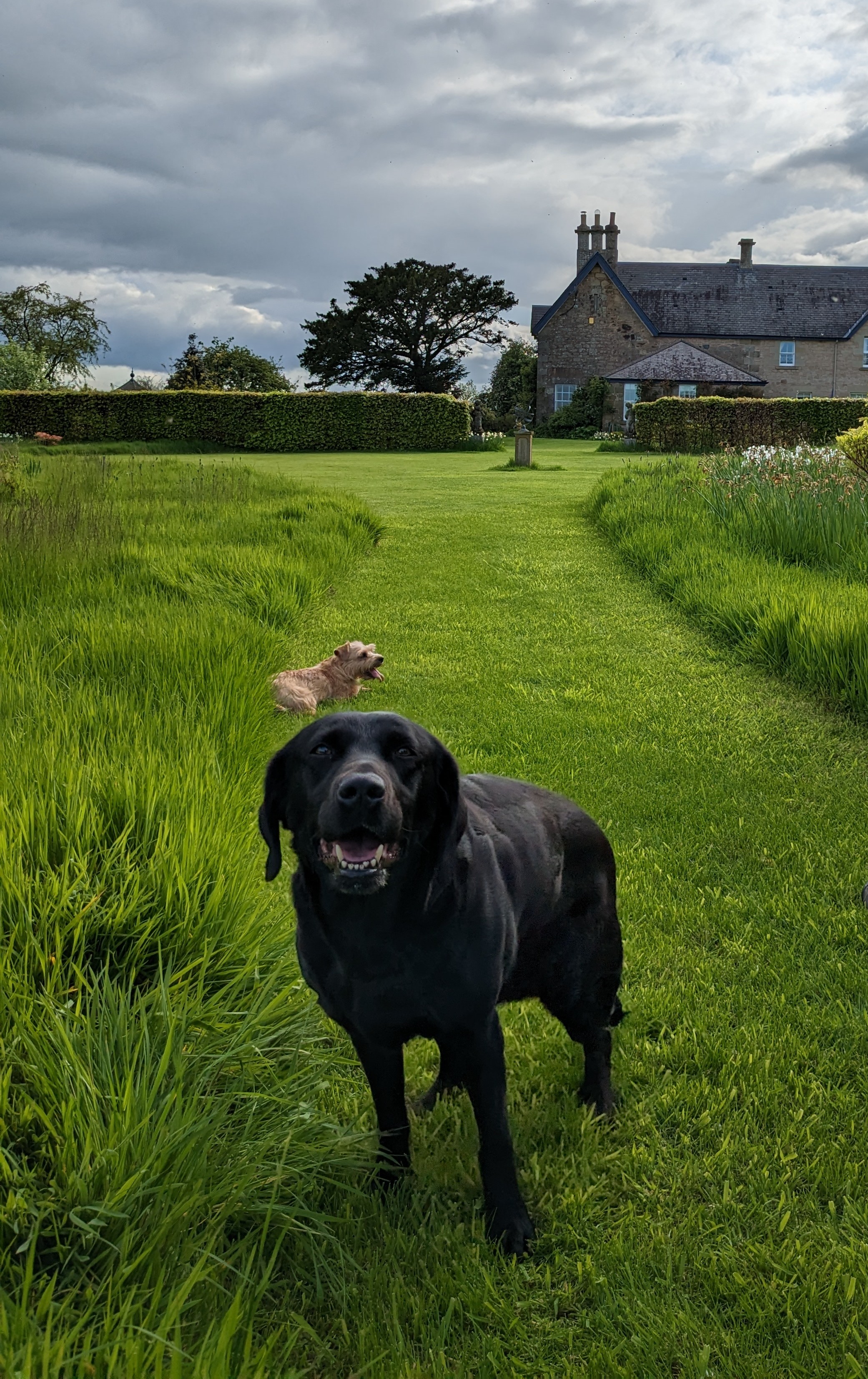 We got back one day before heading off to a house sit near Kelso. This turned out to be the perfect antidote to a manic and emotionally draining start to the month. We certainly fell on our feet at a large former farmhouse, with huge formal gardens and countryside walks and abundant wildlife on the doorstep. We spent most of our time in the stunning garden room. We were looking after 2 dogs; a black Labrador called Bella and a Norfolk Terrier called Slipper. Both were very friendly from the outset and were very well behaved and generally a joy to look after.