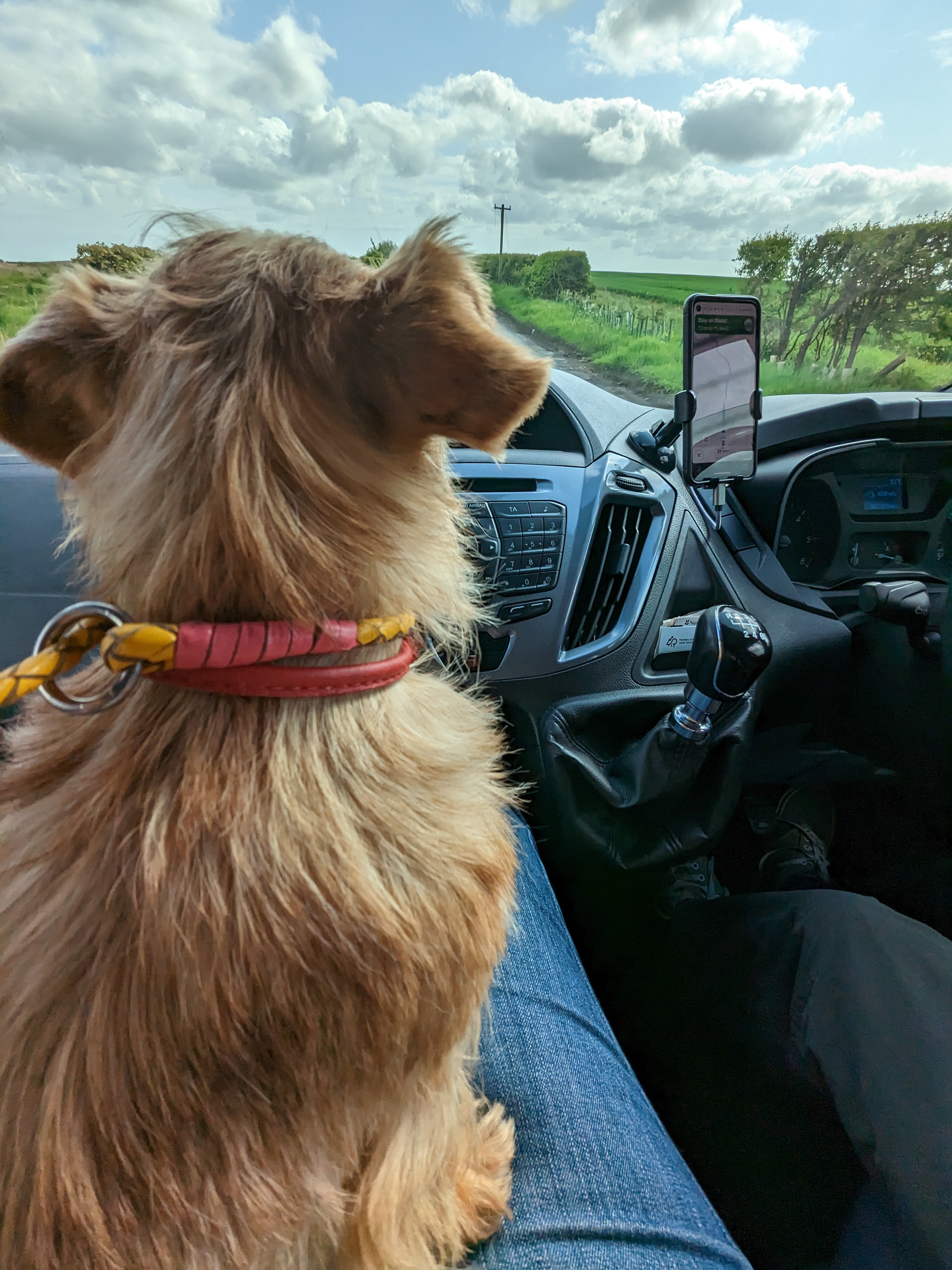 The middle of May was the start of a glorious run of weather up north, which hasn’t yet run out (🤞), so we took the dogs on a couple of adventures. They were very well behaved in the van, and Slipper seemed to love the elevated view. When we told the housekeeper we were planning a trip to the seaside, she told us that she didn’t think the dogs had ever been. They certainly seemed to enjoy it, although Slipper wasn’t too sure about water that comes after you.
