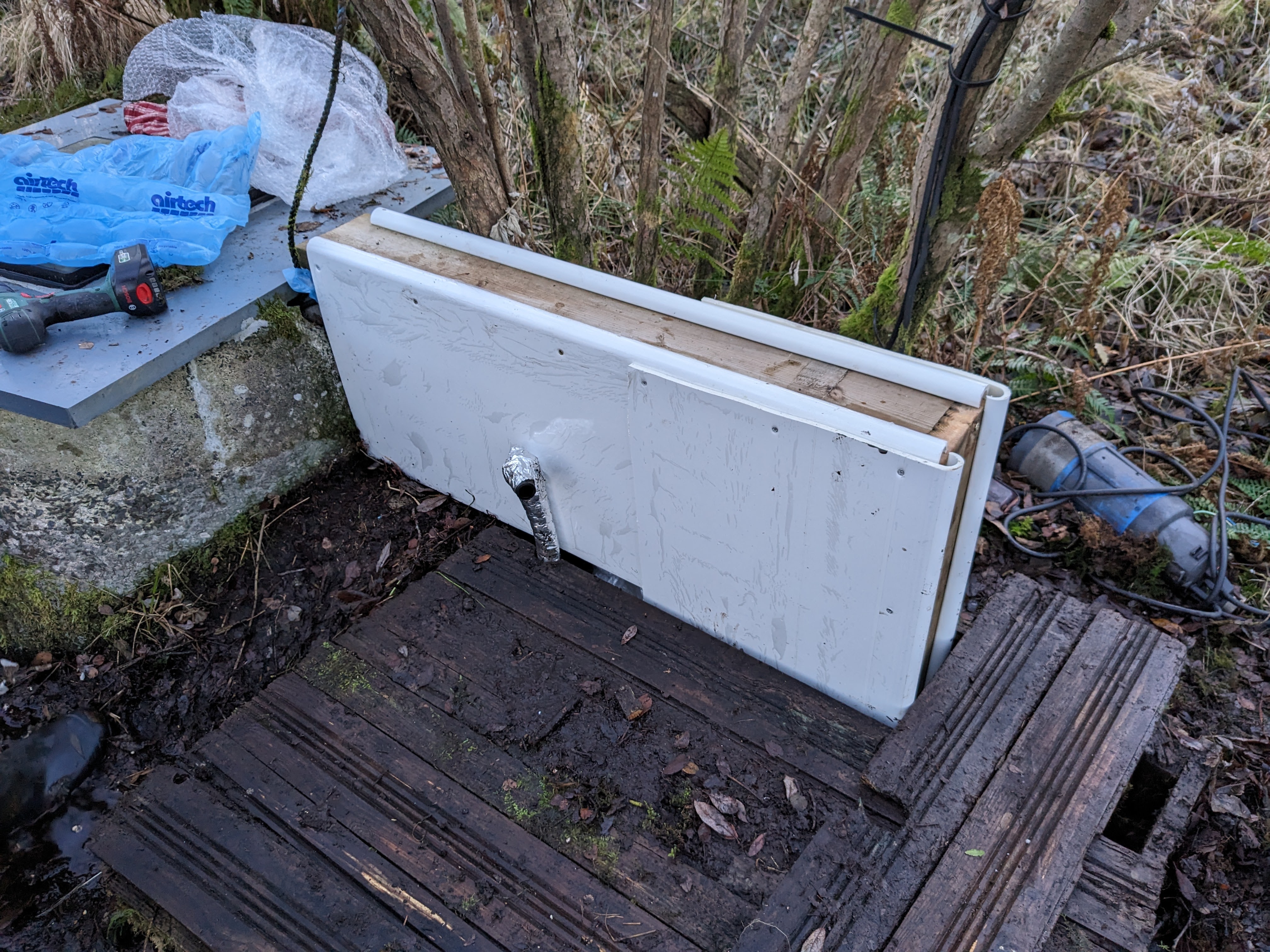 The previous owner had told us that the pump in the well that supplies our water, had been replaced about 6 months ago. We thought, great, that’s one less thing to worry about as it shouldn’t need replacing for some time. Talking to a neighbour, we uncovered the other half of the story……..the old pump had failed when the pipework froze solid last winter and the pump burnt out trying in vain to move water. With a cold snap forecast, we thought we should get on to that a bit quick, and before my in-laws came to visit. Nearly all the materials were sourced from around the property, so we only had to pay for the foil backed bubble wrap tape. It is working so far, and survived down to -7 deg C last week. Fingers crossed!
