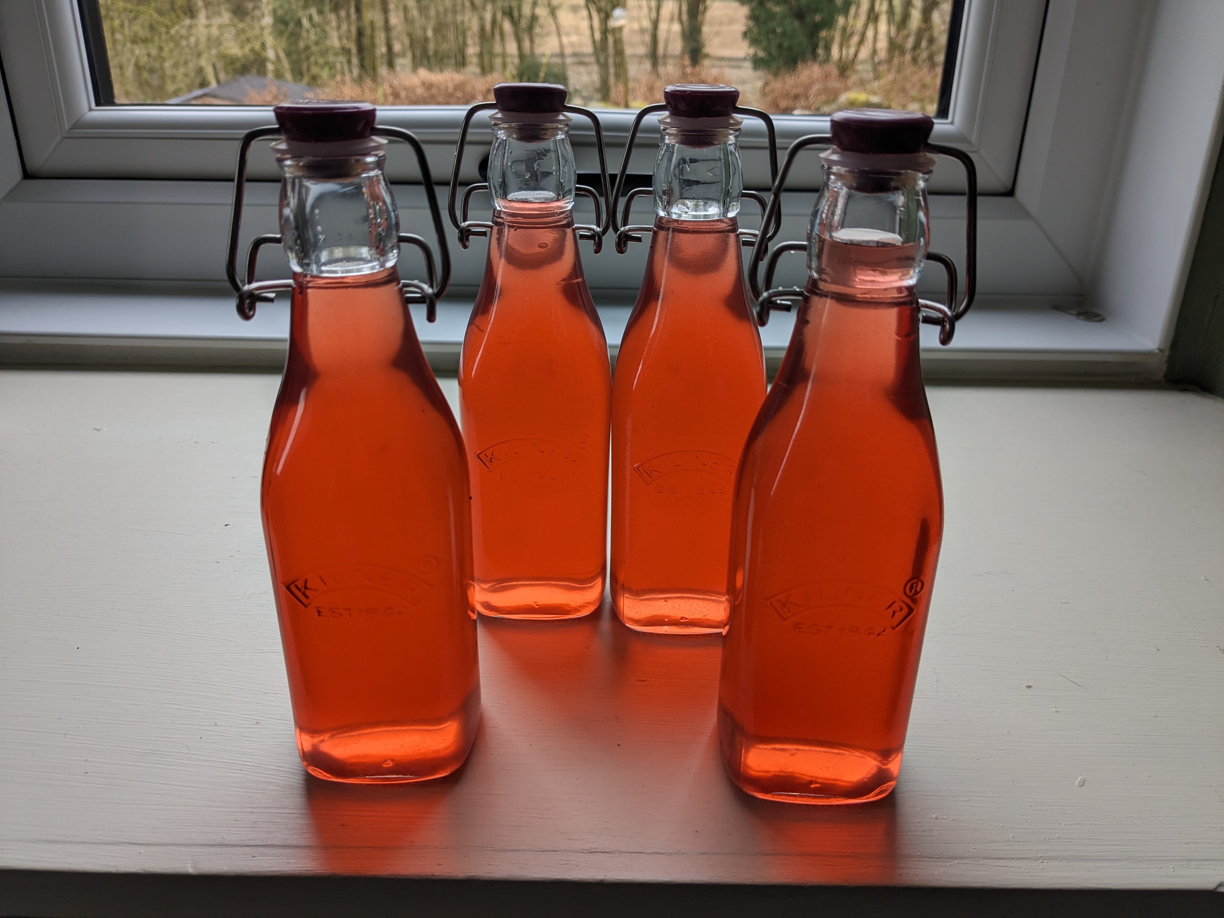 The nettle cordial was very simple of make and turned out very tasty, and a pretty colour to boot. It is hard to describe the flavour, there is perhaps something of the elderflower in there, or maybe rhubarb. One of our friends just said it “tastes of hedgerows”, but he drank quite a lot of it, so I think it was complementary.