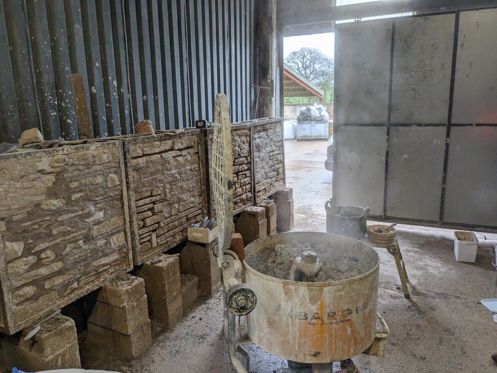 The training was for a small group of 6 of us, all facing similar challenges, so it was a fun and collaborative day. As I expected, I was the only female, but I am well used to that by now. We tried our hand at hot mixing lime mortar, plaster and insulating plaster and quicklime wash. They had practice walls to have a go at pointing stone and plastering, and I am pleased to say that lime is much easier to work with than cement/gypsum – especially the insulating plaster that is really light, owing to the inclusion of perlite and hemp.
