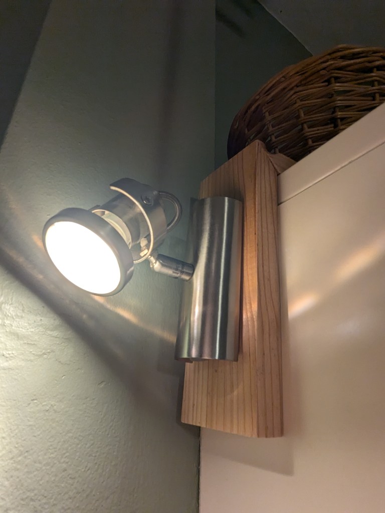 A rather more simple job that was also completed in November, was finally sorting out the task lighting in the kitchen. The ceiling light is behind you as you stand at the Rayburn and worktop next to it, so cooking meant always working in your own shadow. Well not any more! Clever Mr.W has rigged up an old wall spot light, we already had, to fit to the side of a wall cupboard to point at the Rayburn. We also now have new LED under cupboard lights to illuminate the worktop and previously very dark corner under the wall units. My personal favourite part – he also rigged up a sensor so all these lights come on when you wave your hand under the wall cupboards. This last idea was stolen from the fancy new kitchen installed at our favourite house sit in the Yorkshire Dales.