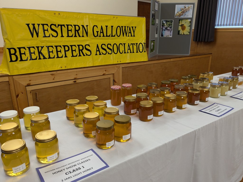 The culmination of a years work for the local beekeepers association that we joined in September, was their annual Honey Show this month. I was able to take part in a small way in the rolled beeswax candle class. I thought I should show willing and always like to learn something new. Unfortunately I made a rookie technical error. Part of the judging is to light the candle, blow it out and re-light it. If you don’t dip the wick in wax (which I didn’t), it burns too fast, making it very difficult to re-light. The judge (a qualified honey judge brought in specially for the occasion, and who had apparently judged the national Scottish Honey Show this year) was focussed on getting the technical things right before she even thought about design, so I was on to a loser this time. Better luck next year.