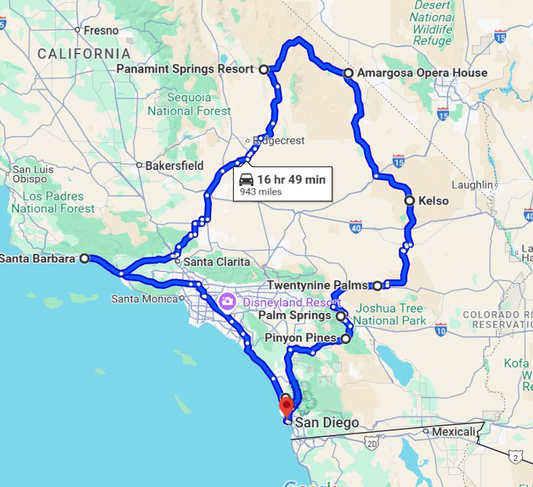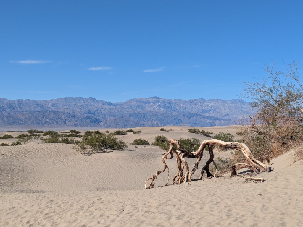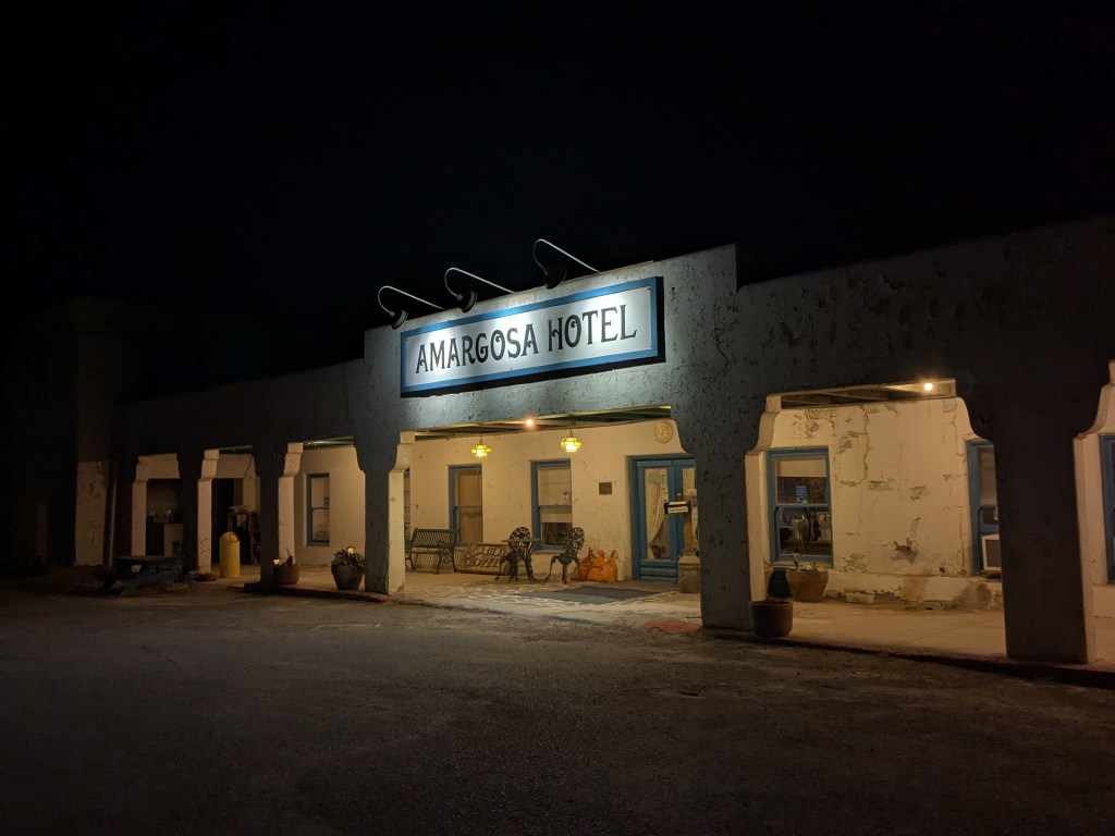 I was disappointed not to to see a real life road runner or coyote – that was always one of my favourite cartoons growing up. Despite a few wilderness walks we weren’t lucky enough to catch a glimpse of any wildlife except birds. There are a few experiences that will stay with us – sunset at Zabriskie Point, heat haze rising off salt flats, staying at an eccentric isolated 100-year-old hotel with an opera house (and 100 year old plumbing) and managing to turn up at a neighbourhood pizzeria in Twentynine Palms on the one night a month they have a Dolly Parton tribute drag act.