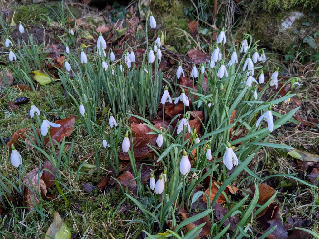 The last of the Californian sunshine, snowdrops in the garden and a little project to help the swallows out – we had two nests fall down in the woodshed last year, probably because it was so damp.