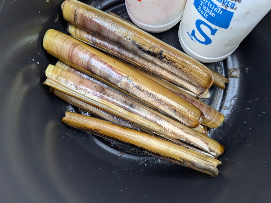 There were a few high spots in April. I managed to get my seed potatoes planted at the very start of the month, and we joined a coastal foraging walk on the 27th that we had booked some time ago. As well as learning about seaweeds, we went hunting for razor clams at low tide. They shoot up spurts of water when they feel the vibration of your footsteps and they start to burrow down. If you are quick, and immediately pour salt on their burrow, they pop up out of the sand!