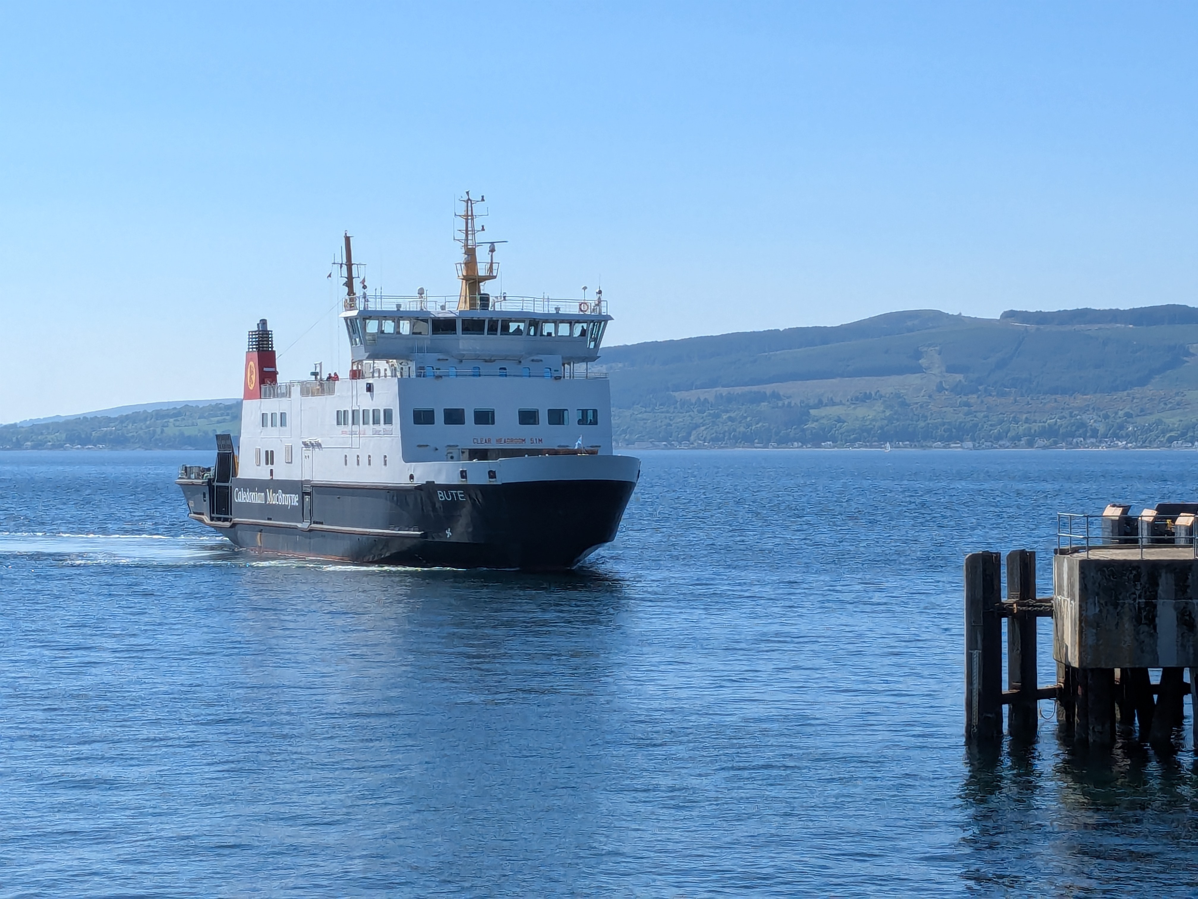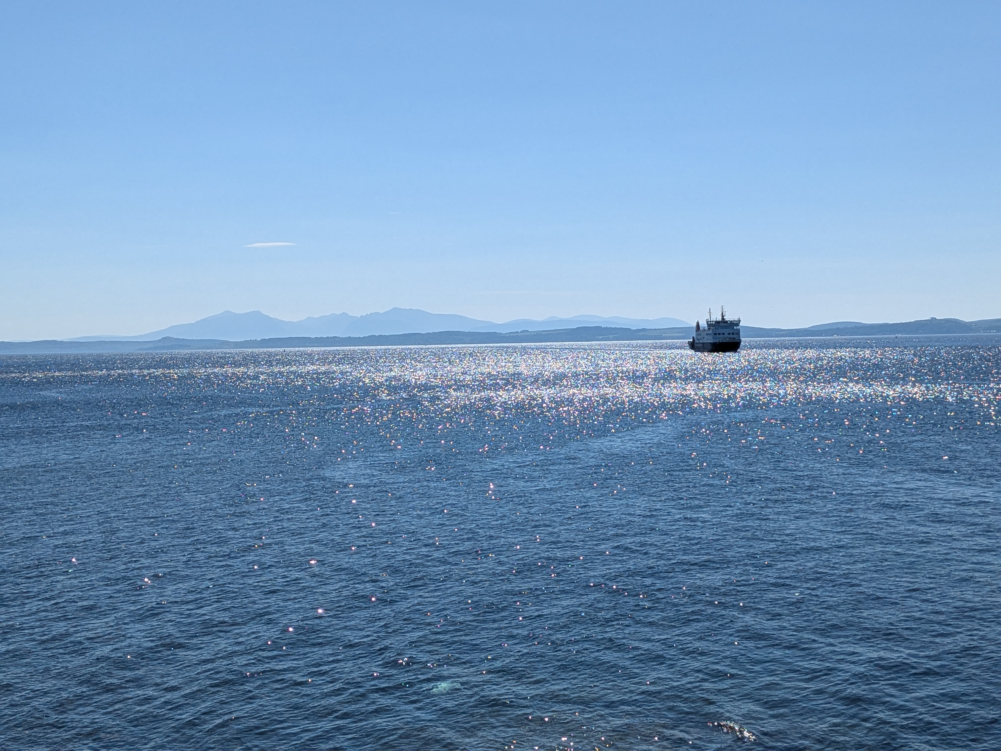 The view from Bute across to Argyll and the ferry at Colintrave, on a perfect sunny day