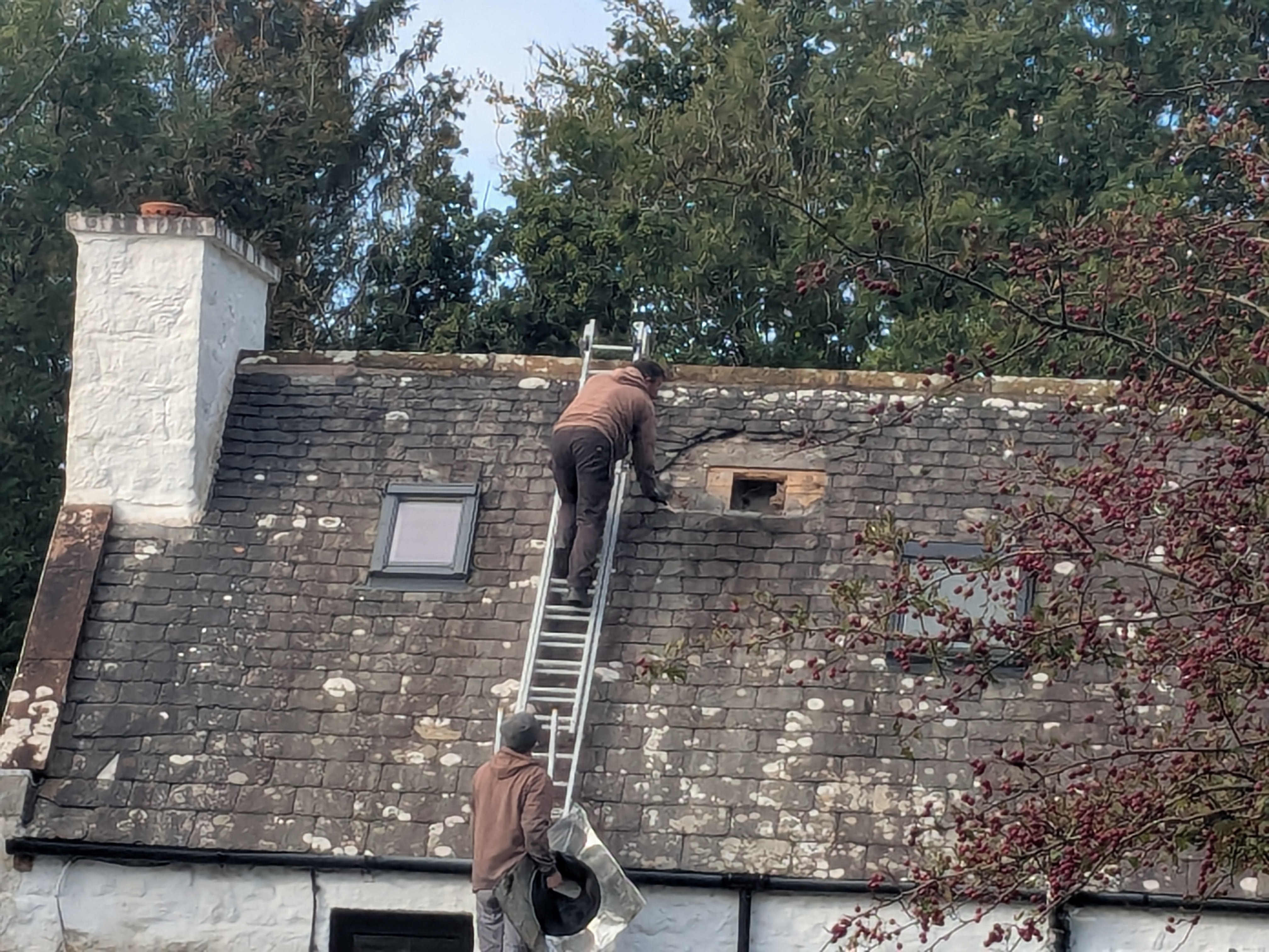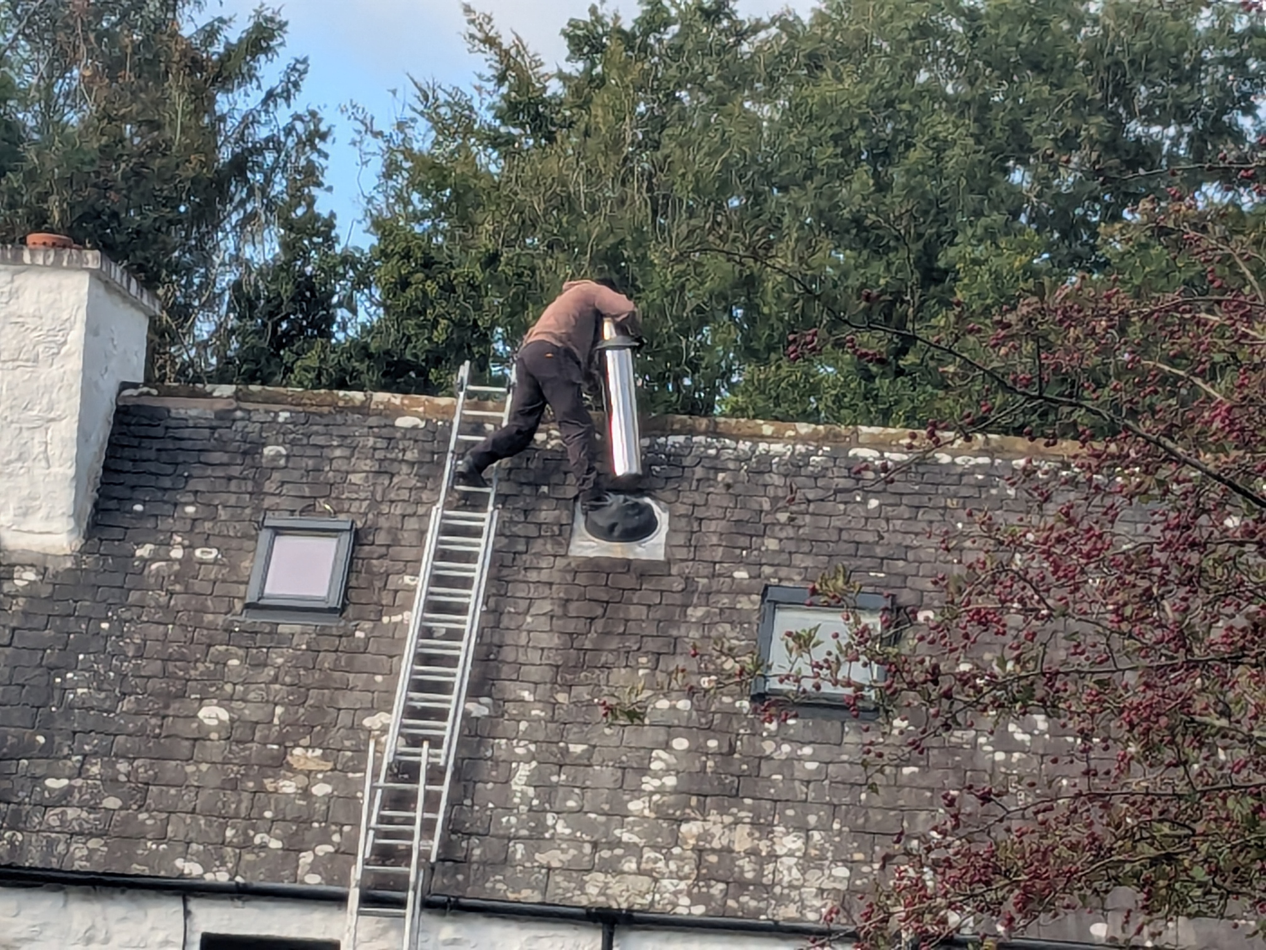 The large stainless flue through the roof was also now redundant. We suggested they replace it with a vent tile for the kitchen and bathroom extractors that were being fitted as part of the deal. Thankfully they agreed that was a good idea, and the roof now looks much tidier and they haven’t had to punch too many additional holes in the oldest part of the house. We are also grateful not to be left with a metal tube in our kitchen ceiling, open directly to outside.