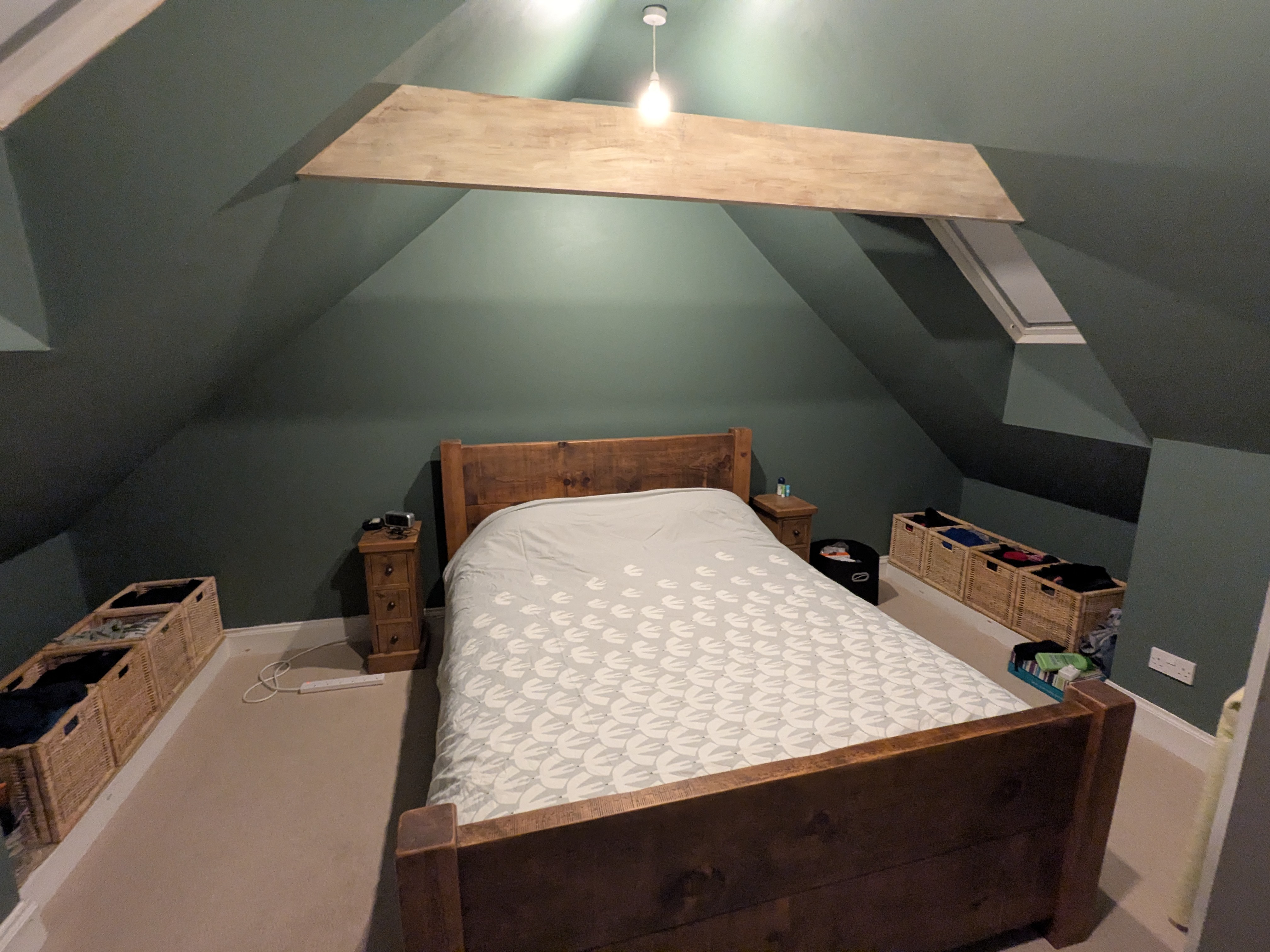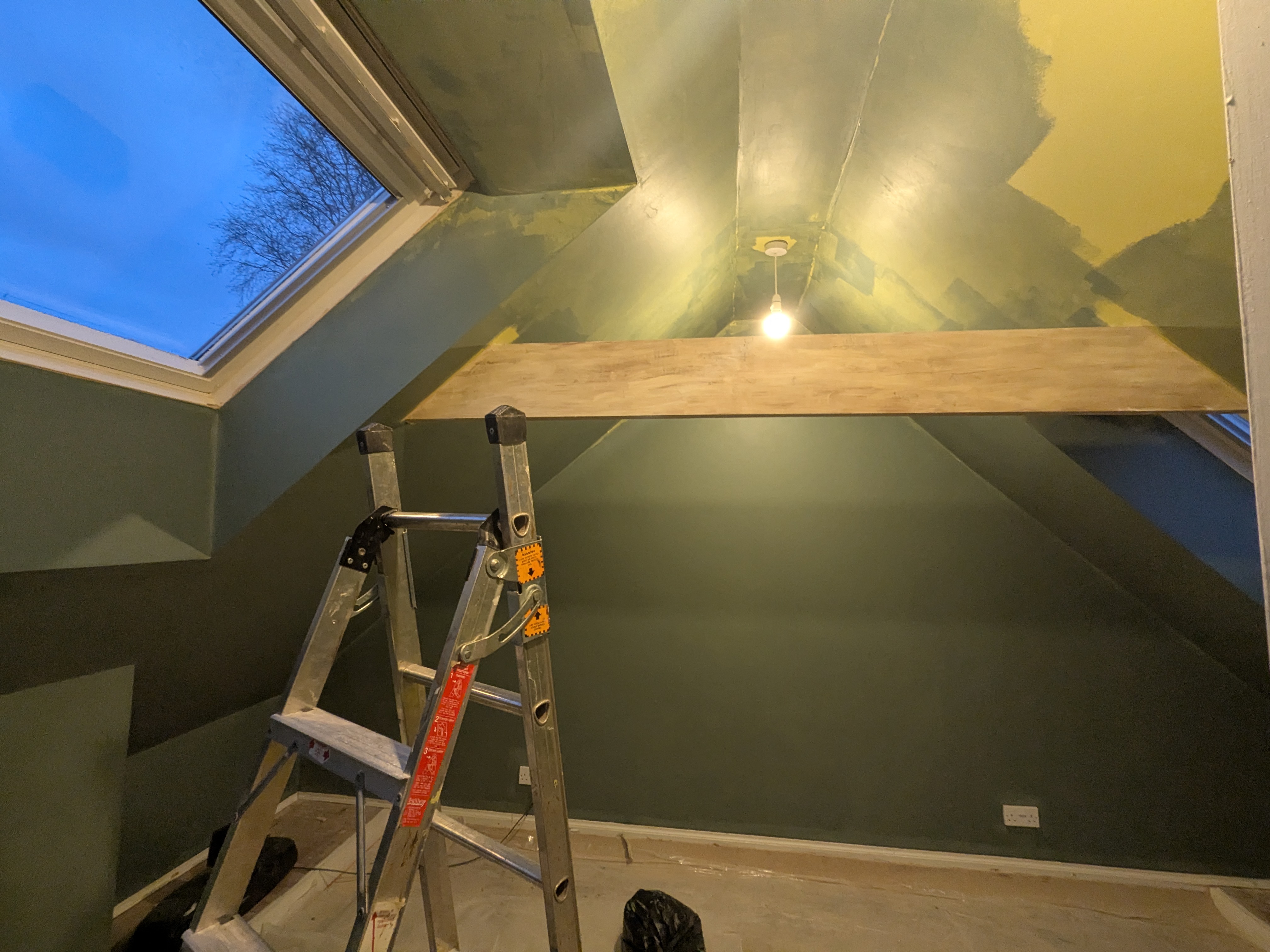 It is great to have the 2 bedrooms upstairs finished, even though the plastering in our bedroom leaves significant room for improvement. We did a lot of filling and prep before painting, but it still isn’t great. The plasterer that did it was subcontracted by the installers. He is quite young and disappeared part way through the job. After all sorts of excuses, it turned out he got a new job working in a creamery. Plastering obviously wasn’t for him. The replacement took a while to arrive, but was definitely more skilled.