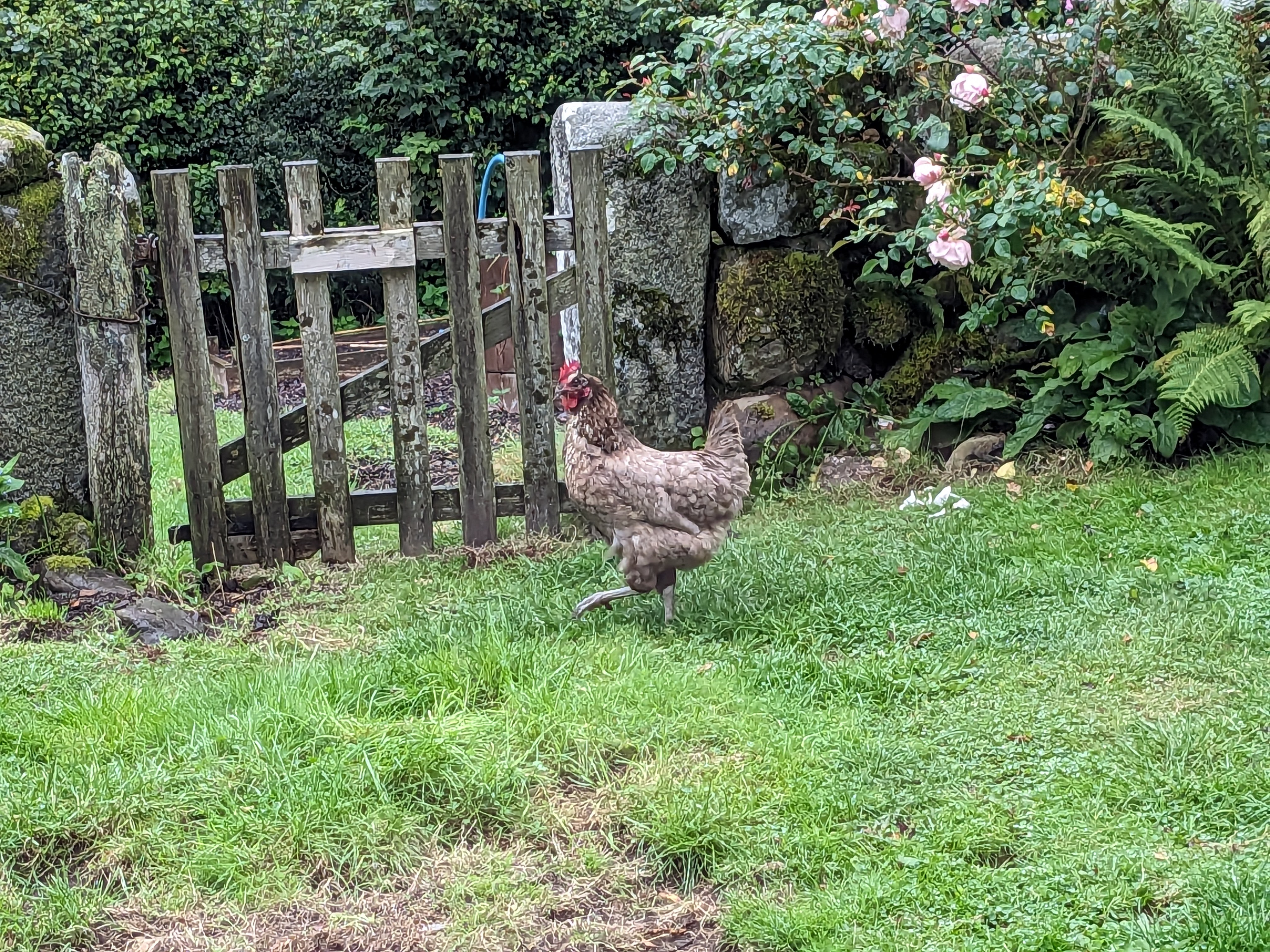 It happened at last! After 1 year, 9 weeks and 6 days of housesitting, campervanning and renting; on the 14th September, we got the keys to a home that we own. It is an eclectic mix of 18th century shepherd’s cottage and 1980’s additions, but it was the 2 acres of garden, woodland and scrubby wild areas surrounded by farmland and wilderness that was the real draw. Having looked at all sorts of different property options and building plots, we decided that being in a ‘nice spot’ with few neighbours and plenty of wildlife was our top priority, which meant we could be less fussy about the house itself. It turns out that our purchase also includes a rather wilful chicken.