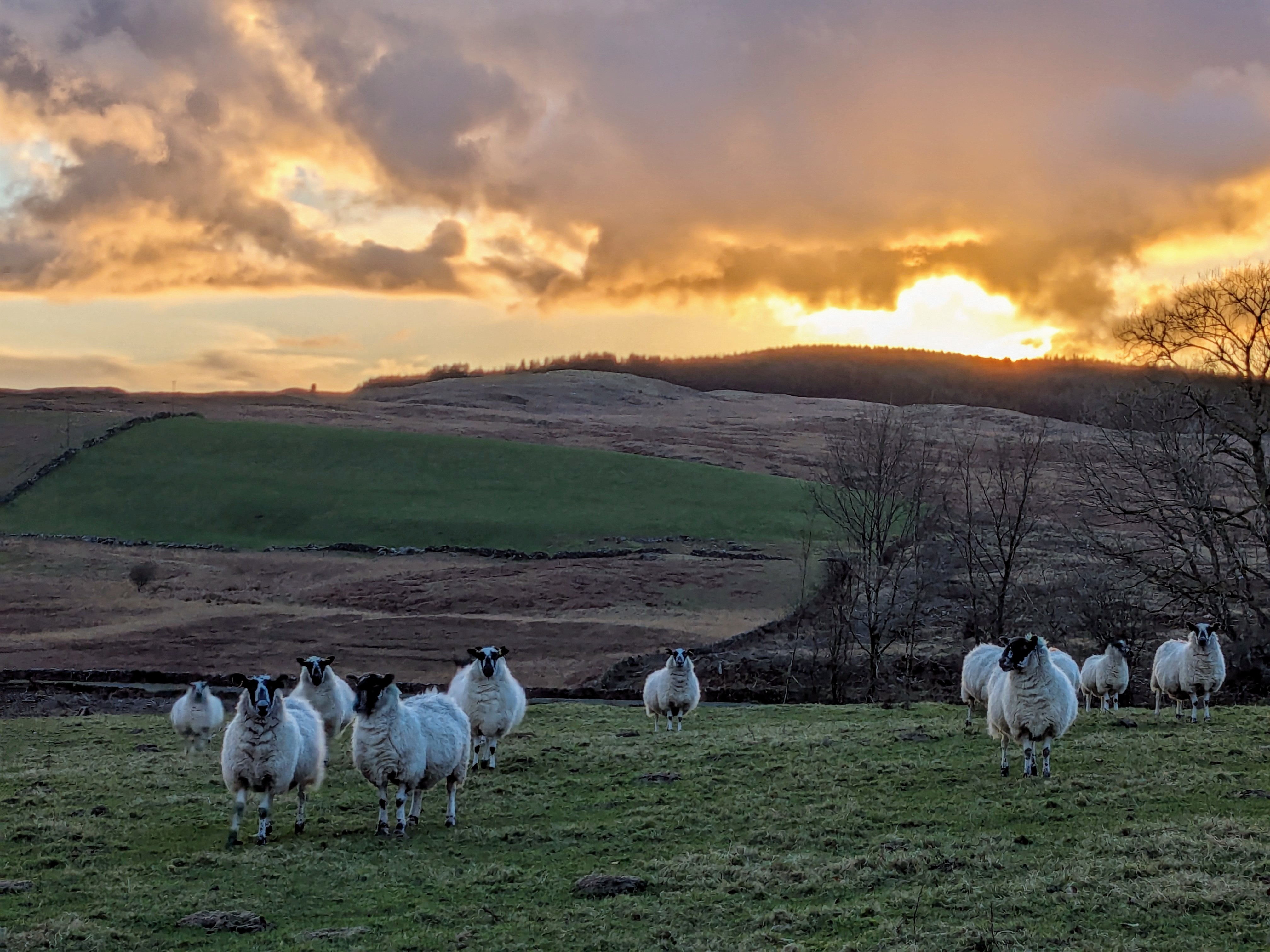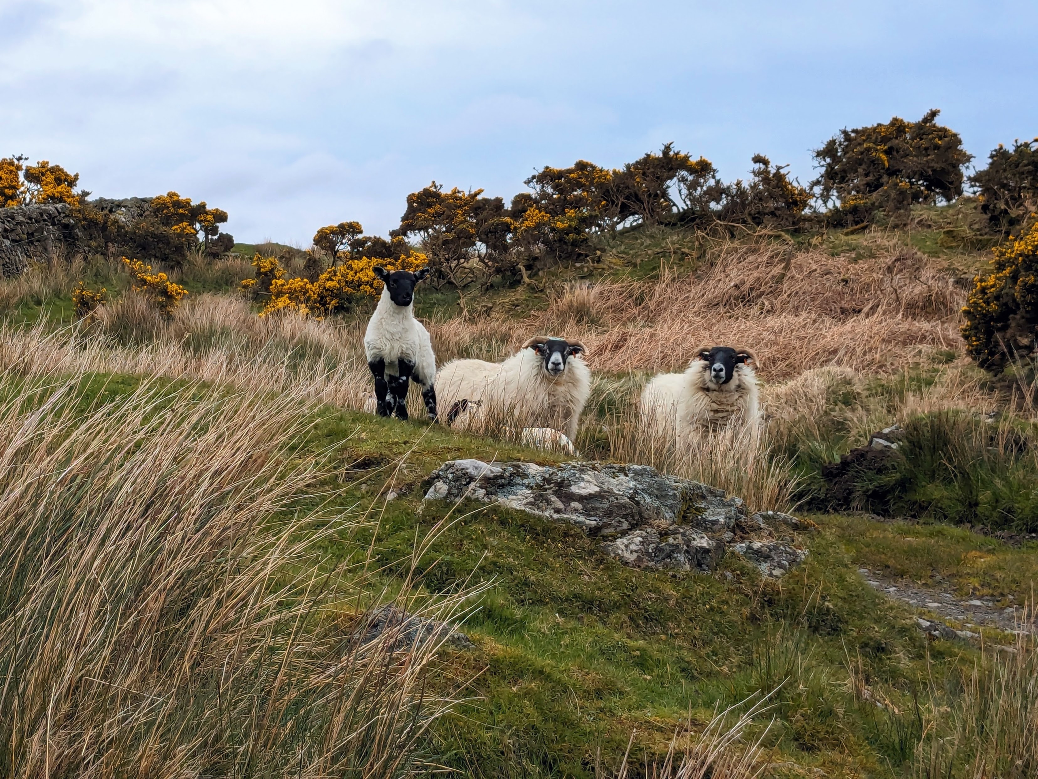 Some of the hardy Scottish Blackface sheep in the hills near us.